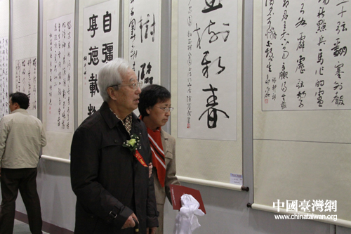 一位老人在家人的搀扶下观看摄影展。中国台湾网 冯江 摄