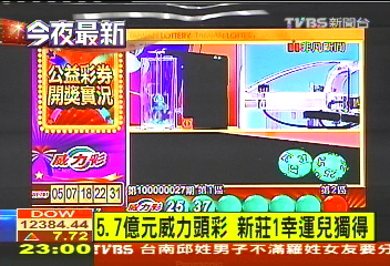 中国台湾网4月5日消息 据台湾TVBS电视台报道,连续杠龟(赌输)21次的台湾威力彩4日晚开出,高达5.7亿元(新台币,下同)的头奖由新北市的一名幸运儿独得,而这项头奖也创下了今年威力彩单注最高的彩金记录。