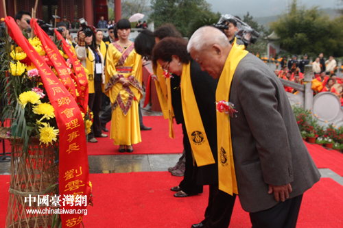 辛卯年清明海峡两岸祭祀炎帝神农氏大典4月3日在湖南炎陵县炎帝陵举行,190余名参加第二届在台湘籍后裔湖南行的在台湘籍人士参加了祭祀典礼。(中国台湾网 杨丽 摄)