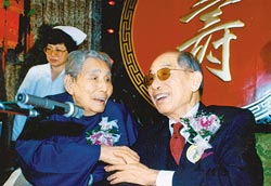 与张学良有数十年交情的台湾地区领导人办公室资政张群(左),在张学良90寿辰聚会中与其执手相对,相知相得的真挚之情自然流露。图片来源:台湾《中国时报》 浏览更多台湾新闻 第1页第2页第3页