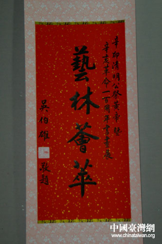 中国国民党荣誉主席吴伯雄题词。(陕西台办张群莉 摄)