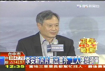 报道称,李安新片在台中水湳机场开拍,这名伤者是新戏的工作人员。伤者张姓男子从高处坠落后,当场血流满面,衣服上也沾满血迹,他被紧急送医后,医护人员检查他的伤势,发现他后脑有4公分撕裂伤。
