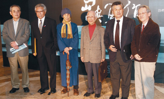 《他们在岛屿写作》记录6位文学大师身影,片中主角杨牧(左起)、郑愁予、周梦蝶、余光中、林海音(已逝,由儿子夏祖焯代表)、王文兴,昨天一同出席发布会。图片来源:台湾《联合报》