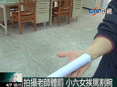 拍摄老师体罚,小六女童挨骂割腕。图片来源:台湾“今日新闻网”