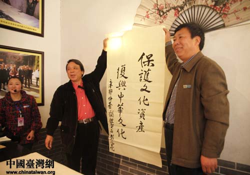 两岸记者参观河南南阳内乡县衙,体验中华文化,台湾记者挥墨倡复兴(中国台湾网 吴捷 摄)