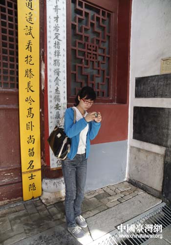 拍摄楹联碑刻(中国台湾网 吴捷 摄)