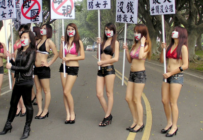 8名辣妹上街举牌抗议。图片来源:台湾“今日新闻网”