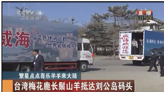 运送车辆抵达刘公岛。图片来源:中央电视台