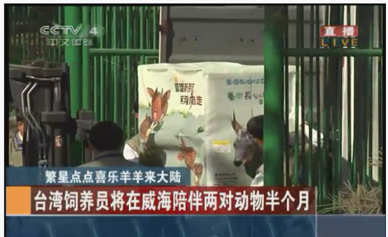 台赠大陆长鬃山羊抵达刘公岛。图片来源:中央电视台