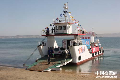 舰艇编队抵达刘公岛。(中国台湾网 刘海伟 摄) 登陆舰上将要在刘公岛卸载的长鬃山羊、梅花鹿。(中国台湾网 刘海伟 摄) 浏览更多台湾新闻 第1页第2页第3页