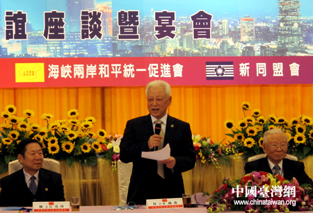 周铁农在“三团体”(新同盟会、海峡两岸和平统一促进会、中国统一联盟)联合欢迎宴会上致辞(图片来源:民革中央)