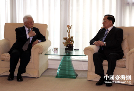 民革中央主席周铁农拜会国民党荣誉主席连战。(图片来源:民革中央)