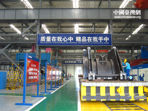 东汽厂房内部,“东汽精神”、“质量在我心中 精品在我手中”,“推进管理创新 打造一流团队”,“建设学习型组织 做知识型员工”,“诚信,严谨,创新,高效”等等标语随处可见,体现了东汽独特的企业文化。(中国台湾网 朱毅 摄)
