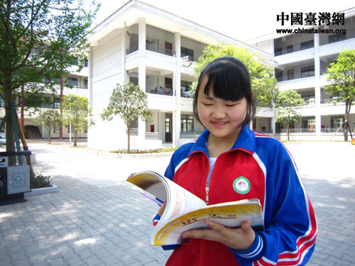 名山县第一中学高一学生王丽娇正在备考,她说,十分感恩台湾同胞的援助,现在教学条件非常好。(中国台湾网 朱毅 摄)