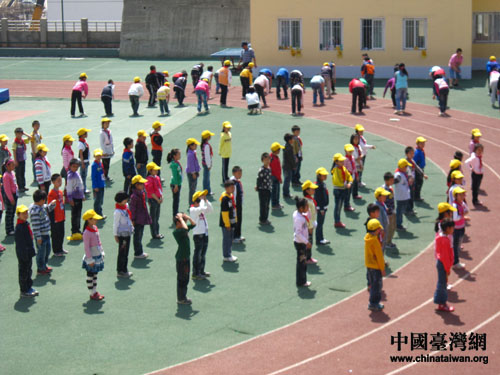 汉源富林镇第一小学的孩子们正在上体育课。(中国台湾网 朱毅 摄)