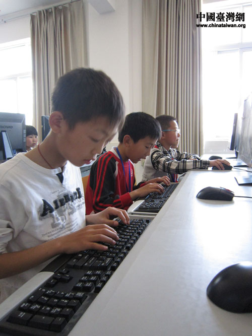 富林镇第一小学学生多功能教室、音乐室、美术室、团队活动室等全都配齐,图为富林镇一小学生正在上计算机课。(中国台湾网 朱毅 摄)