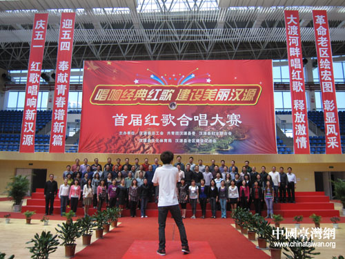 体育馆里面,红色歌曲排练热火朝天,汉源人民用豪壮的歌声表达对美丽新生活的向往。(中国台湾网 朱毅 摄)