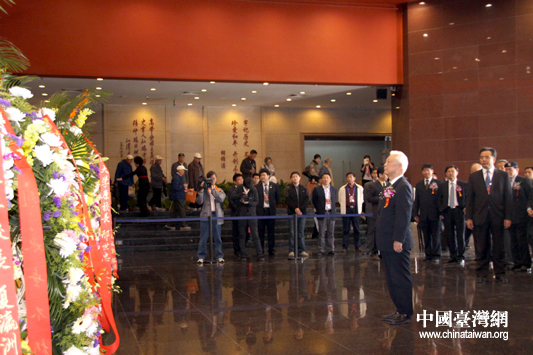 座谈开始前,与会人士在中国人民抗日战争纪念馆大厅雕像前,向抗日英烈进献花篮并三鞠躬,表达缅怀与追思。(中国台湾网 普燕 摄)