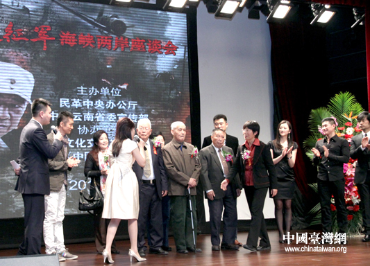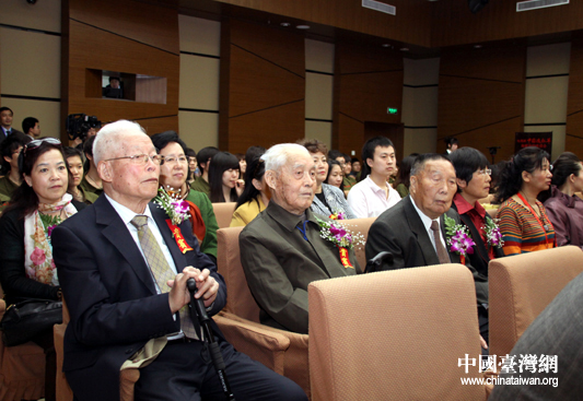三名参加过赴缅作战的中国远征军老兵参加座谈,他们的到来,赢得了在场所有人最热烈的掌声和致敬。(中国台湾网 普燕 摄)