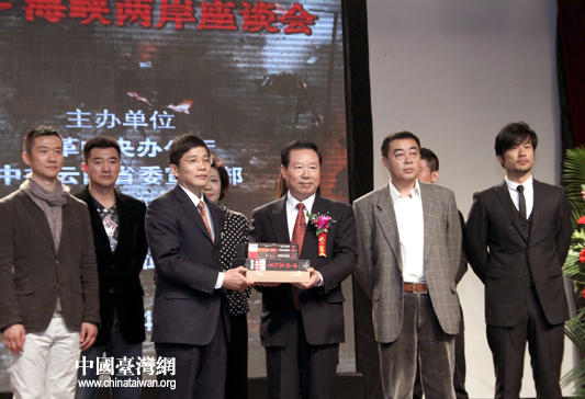 海协会副会长王在希代表剧组向中国人民抗日战争纪念馆赠送了电视剧《中国远征军》珍藏版和历史资料。(中国台湾网 普燕 摄)