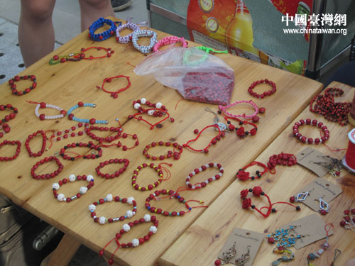 琳琅满目的红豆饰品。(中国台湾网 朱毅 摄)