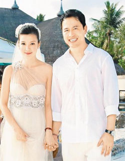 林熙蕾3月底与杨晨在马尔代夫举行婚礼。图片来源:台湾“中时电子报”