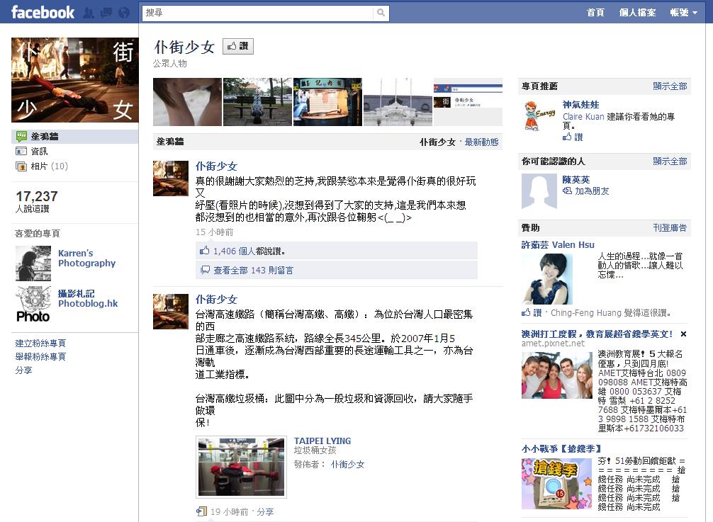 仆街少女的脸书爆火。图片来源:台湾媒体