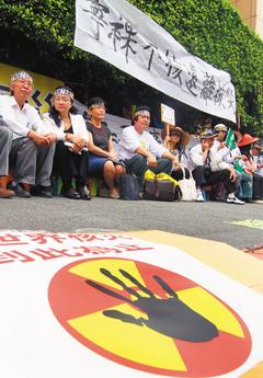 台湾环保团体昨天到台电大楼前,进行24小时反核静坐抗议。图片来源:台湾《联合报》