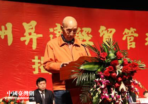 郑州升达经贸管理学院创始人、台湾杰出教育家王广亚在庆典仪式上致辞(图片来源:河南省台办)
