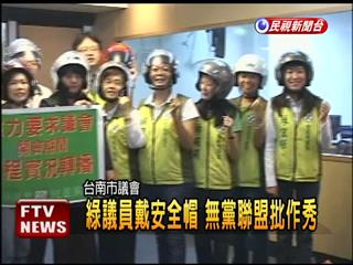 中国台湾网5月13日消息 据台湾媒体报道,台南市议会12日爆发无党籍议员丢垃圾桶砸伤民进党议员的暴力事件。30名民进党议员今日全部戴起安全帽议事,对此,无党籍议员讥讽称“这是作秀”。
