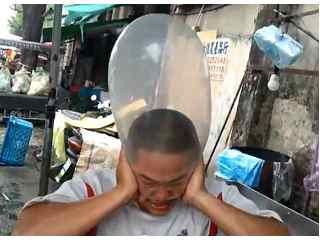 中国台湾网5月20日消息 据台湾“今日新闻网”报道,台中一名鱼贩平日就爱搞笑,被亲友封为搞笑哥。他最近挑战把头塞进去保险套的行为,被朋友拍下来放到影音网站YouTube。网友看完影片之后,直呼“厉害,你哪来的勇气!”他套着保险套的样子,网友也觉得有点象是当红卡通《海绵宝宝》的角色派大星。