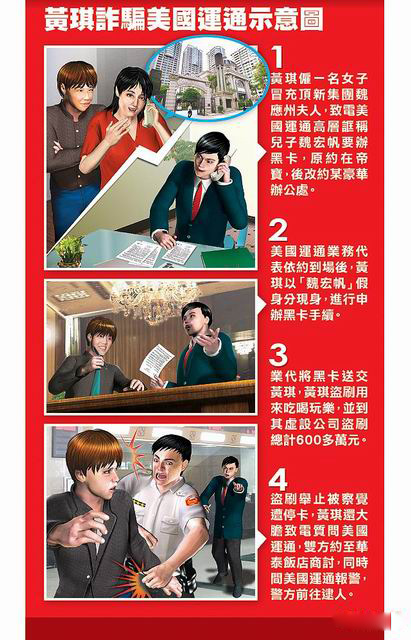 中国台湾网5月22日消息 据台湾媒体报道,3年前骗到前台湾地区领导人陈水扁上门求教的少年黄琪重出江湖行骗,这次假冒台顶新集团董事长魏应州次子魏宏帆,骗美国运通银行发给他刷卡金额无上限的黑卡。黄琪随后设立一家人头公司,短短半个月内盗刷600多万元(新台币,下同),其行径遭联合信用卡征信中心起疑调查停卡,美国运通则报警将他逮捕。昨天(21日),台湾警方将黄琪依伪造文书、诈欺罪送办。