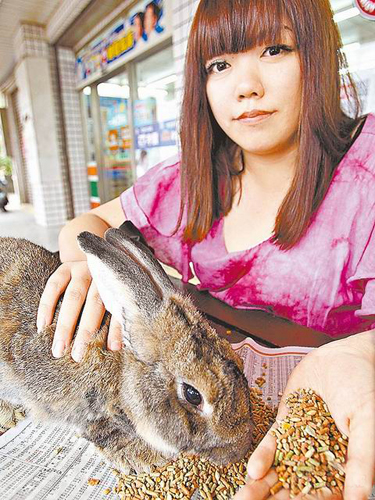 女网友凯力分享前男友“烂软人”学狗、吃兔饲料故事暴红。图为凯力与爱兔噗噗。图片来源:台湾媒体