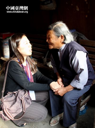 罗海芸与何绍从老人的老伴交谈,询问奶奶的身体和近况。(中国台湾网 杨永青 摄)
