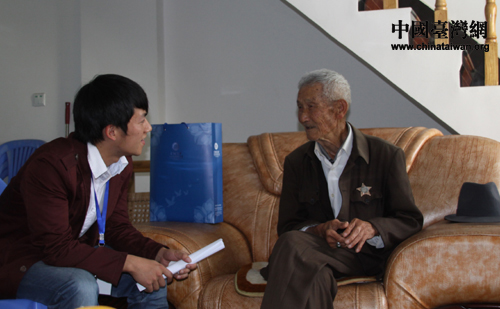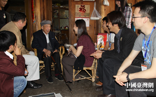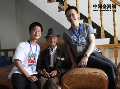 路珍楼老兵向罗海芸等同学讲述当年的抗日故事(中国台湾网 杨永青 摄) 中国宋庆龄基金会李宁秘书长向路珍楼老兵赠送孙中山、宋庆龄邮册(中国台湾网 杨永青 摄) 湖南小老乡周舟围坐在黄有强老兵旁(中国台湾网 杨永青 摄) 廖广南(右)和李梦帆(左)与黄有强老兵合影(中国台湾网 杨永青 摄)