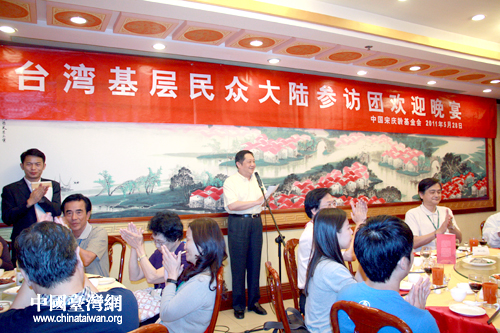 28日晚间,中国宋庆龄基金会秘书长李宁在和平门全聚德烤鸭店为台湾基层民众参访团举行欢迎晚宴,并特别邀请了在京上学的两岸及港澳大学生与参访团成员一起交流,共同度过一个温馨难忘的夜晚。(中国台湾网 普燕 摄)