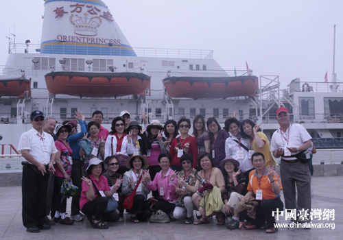 百名台湾基层民众大陆参访团走进天津,图为部分团员外滩合影(中国台湾网 吴捷 摄)