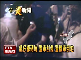 中国台湾网6月7日消息 据台湾媒体报道,端午假期,高雄飚车族相约出动狂飙,警方前往围捕时,嚣张的飙仔竟然拿砖块丢向警车,一辆警车被砸中,一辆警用摩托车也被冲撞倒地。警方逮捕一对兄弟档飙仔,依违反“公共危险罪”送办。
