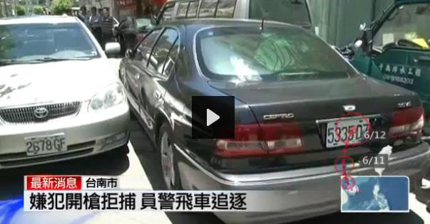 据报道,台南市今日上午约10时传出枪响,一名嫌犯开枪拒捕且驾车钻小巷,警匪展开飞车追逐,并爆发枪战,附近车子多遭流弹波及。