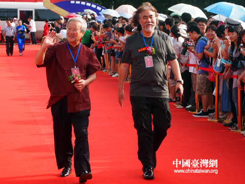 10日,海峡影视展映展播周在厦门大学举行首映式。图为著名导演张纪中(右)、谢飞。(中国台湾网 张瑞宸 摄)