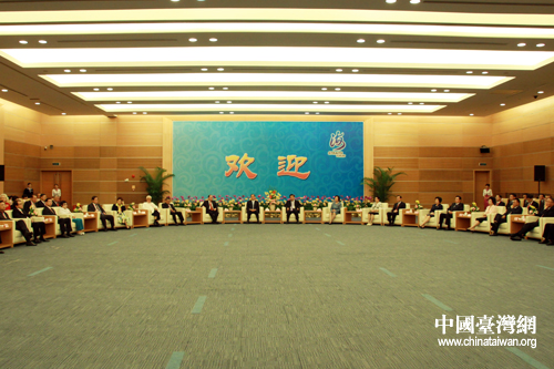 6月11日,中共中央政治局常委、全国政协主席贾庆林在厦门会见了出席第三届海峡论坛的台湾嘉宾代表。(中国台湾网 王伟 摄)