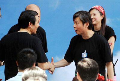 主持人介绍,“台湾赞声团”荣誉团长包括国民党中央评议委员会主席团主席林澄枝,国民党副主席江丙坤、林丰正、詹春柏、蒋孝严,国民党秘书长廖了以,前台当局卫生部门主管叶金川与前台当局公共工程部门主管范良锈等。