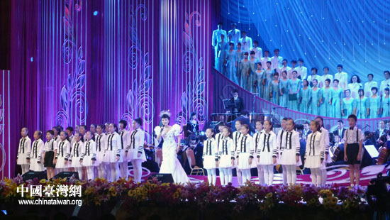 雷佳与台湾歌手许景淳共同演唱闽南语歌曲《天顶的月娘》(中国台湾网 李徽 摄)
