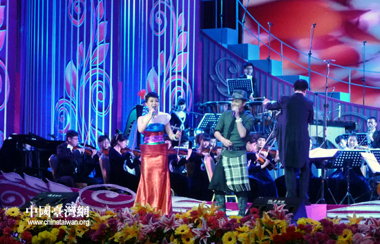 雷佳与台湾歌手范逸臣演唱《那鲁湾情歌》(中国台湾网 李徽 摄)