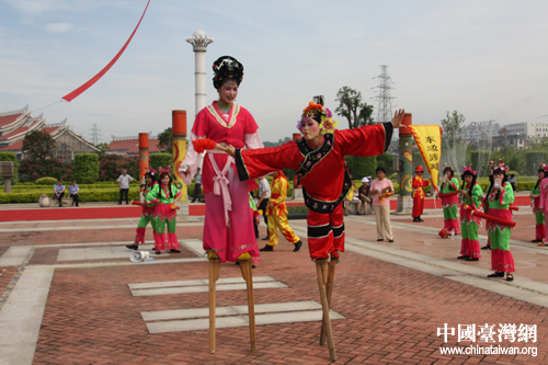 闽台民俗表演,踩高跷。(中国台湾网 于斯文 摄)