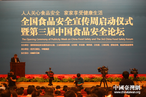 中国台湾网6月13日北京消息 以“食品安全:共同的责任 ”为主题的“第三届(2011)中国食品安全高层论坛暨食品安全宣传周启动仪式”今天在人民大会堂举行。