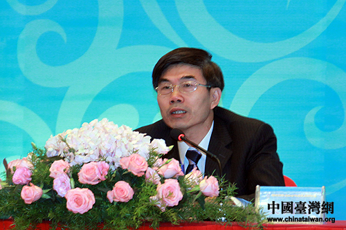 中国人民银行福州中心支行行长吴国培致欢迎词。(中国台湾网 王伟 摄)