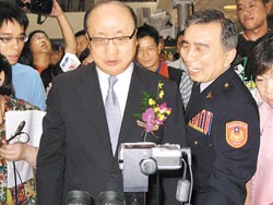 台中市长胡志强昨天在市警察局长刁建生陪同下,参观治安成果展示。图片来源:台湾《中国时报》