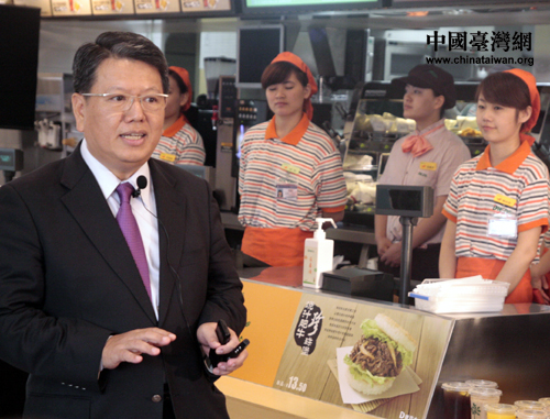 顶新集团魏董事长介绍德克士首家新舒食概念店。(中国台湾网 吴怡摄)
