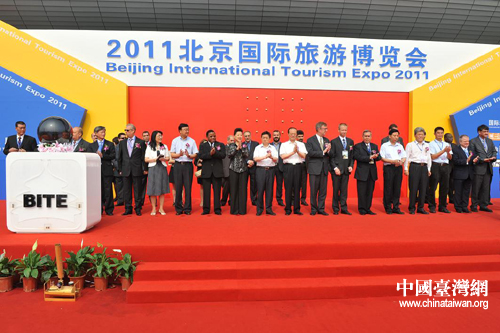 2011“第八届北京国际旅游博览会”今日开幕,国家旅游局局长邵琪伟、北京市副市长丁向阳、北京市人民政府台湾事务办公室主任马玉萍等领导出席2011北京国际旅游博览会开馆仪式(图片来源:北京市台办)